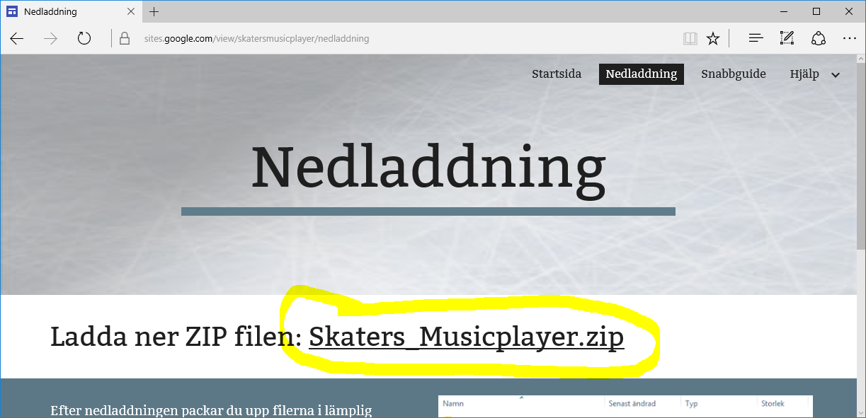 Vid nedladdning med Microsoft Edge så klickar man på länken för att starta nedladdning. | ![]() |