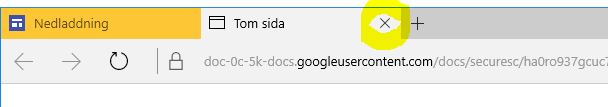 | Edge öppnar då en ny flik och ursprungsfliken (nedladdning) börjar blinka. Stäng den tomma fliken som Edge har öppnat och gå tillbaka till ursprungsfliken. | ![]() |