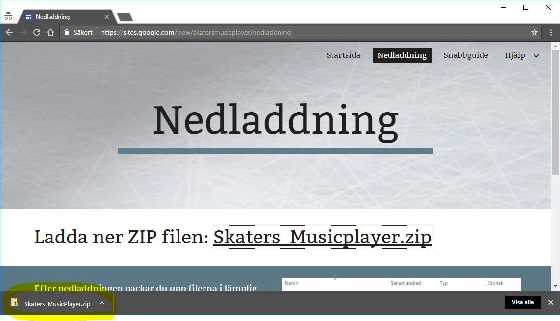 Vid nedladdning med Google Chrome så klickar man på länken för att starta nedladdning. | ![]() |
