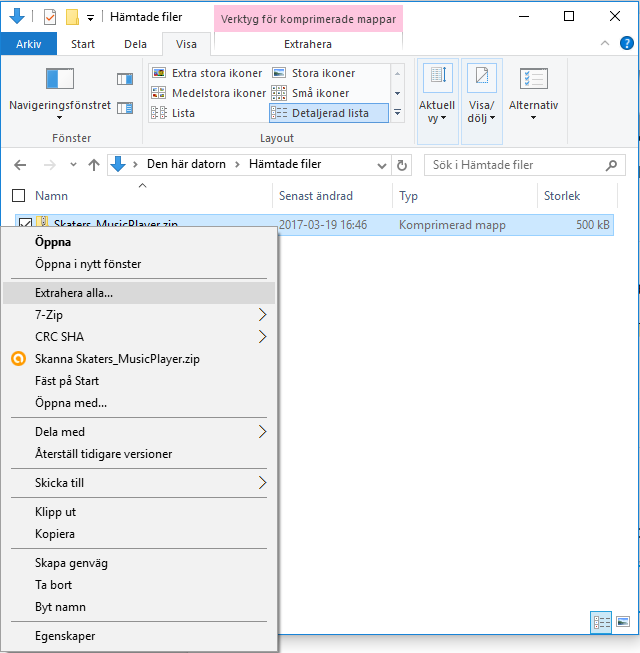 Högerklicka på filen, och välj Extrahera alla... | ![]() |