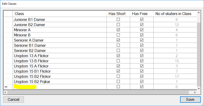 | Markera raden efter sista klassen och lägg in uppgifterna på klassen. | ![]() |