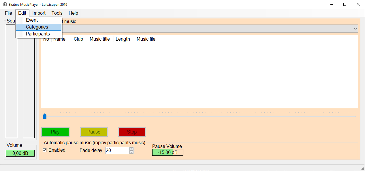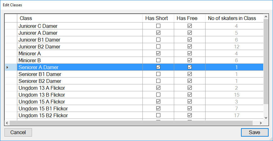 Om man behöver ta bort en klass, så kan man göra detta via menyvalet Edit / Categories. T.ex. om man har fått en avanmälan efter man har importerat filen från IndTA så det inte finns åkare kvar i klassen. Eller om man har i IndTA klasser för Lagledare/Tränare m.fl. | ![]() |