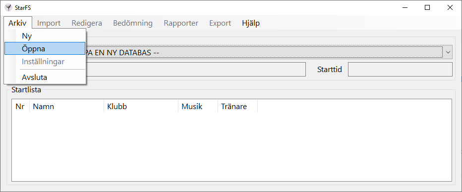 | Finns det redan en tävlingsdatabas väljer man istället Arkiv / Öppna | ![]() |