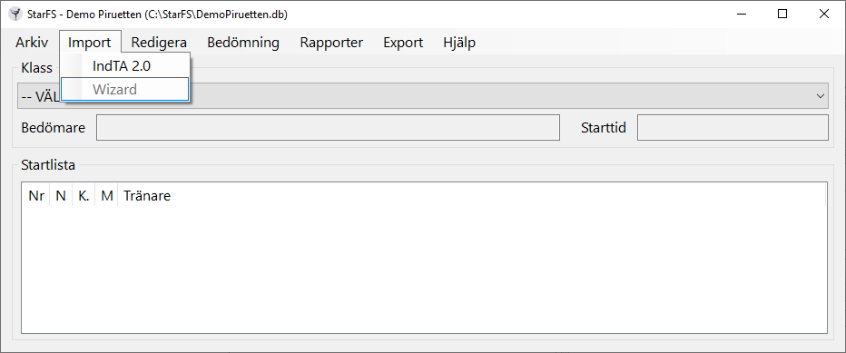 Starta programmet och välj Import / IndTA 2.0 | ![]() |