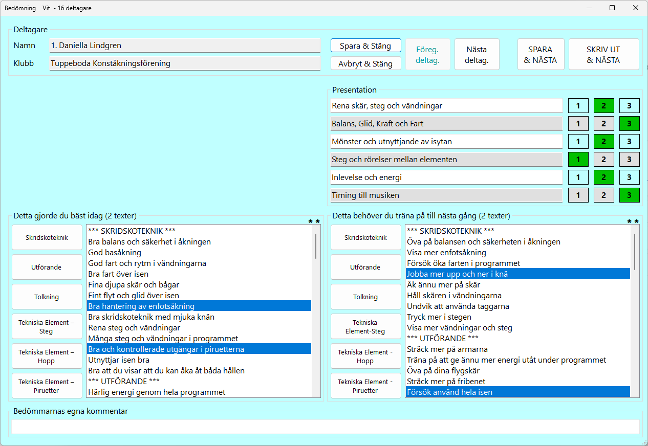 Här finns möjlighet för bedömarna att själva skriva in en text om de fördefinierade texterna inte är lämpliga eller om man vill skriva något speciellt till en deltagare.