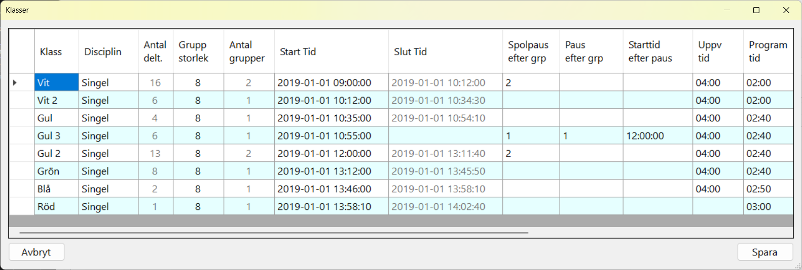 PS. För den som tittar lite noga så ser ni att det är olika sluttider för Vit Klass-bilden respektive tidsschemat. Detta beror på att det har blivit en strykning av en deltagare i klassen. Tidsschemat tar hänsyn till detta, men det gör inte klass-bilden.