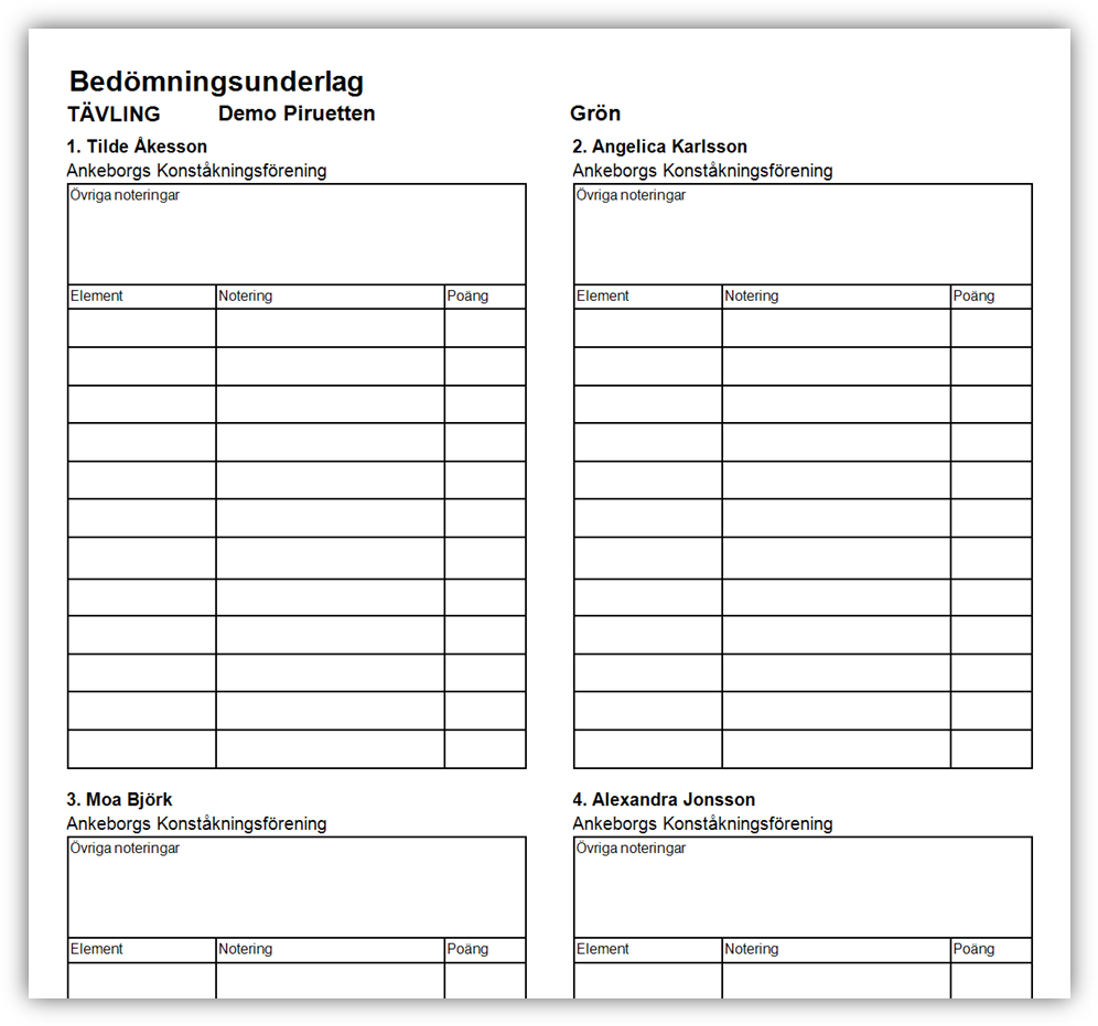 Det finns en möjlighet att skriva ut ett bedömningsunderlag som stöd för bedömarna. Detta skriv ut för klasserna som har placering.